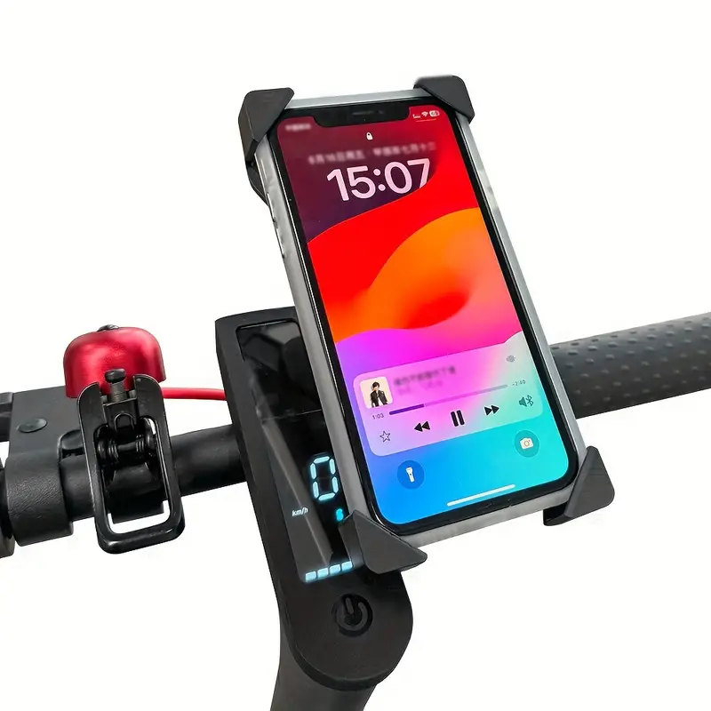 Secure your smartphone during rides with this 360° Rotatable Phone Holder, ideal for scooters, bicycles, and even strollers. It supports horizontal and vertical viewing, ensuring you never miss a call, map route, or song while commuting.
